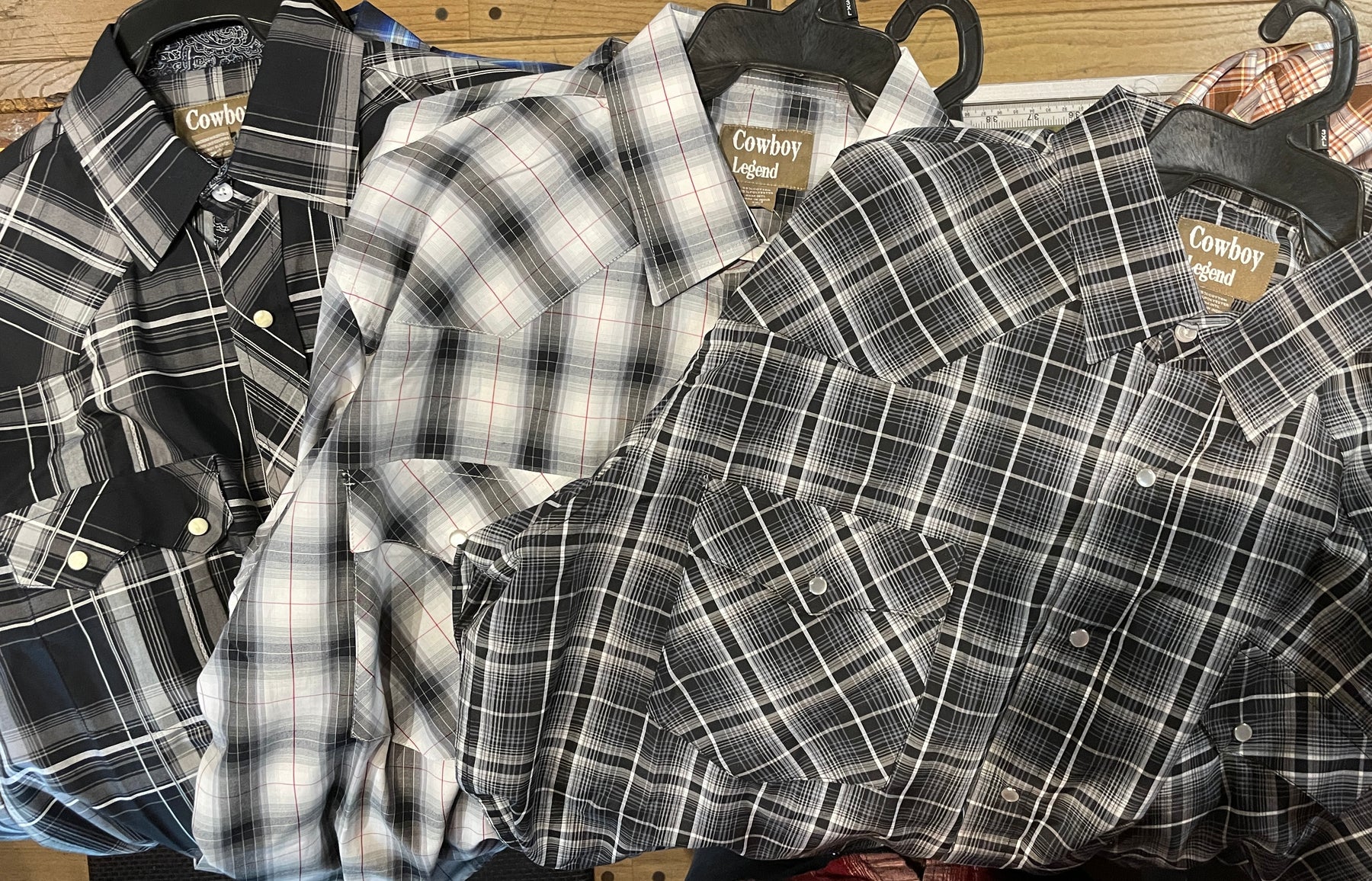 Note: the Plaid colors Blue, Red, and Brown, or Black will always be the base color BUT the tones may change occasionally. The yokes ,snaps will be the same as well.