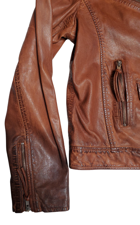 A Timeless Classic leather Modern moto Jacket in Vintage brown by Scully. Expertly tailored from Super soft, high quality leather. The sleek silhouette is slightly fitted at the waist to flatter. Your shape, while shoulder epaulettes and polished hardware add a classic motto finish. Get yours at our Smyrna, TN shop not far from crazy downtown Nashville.